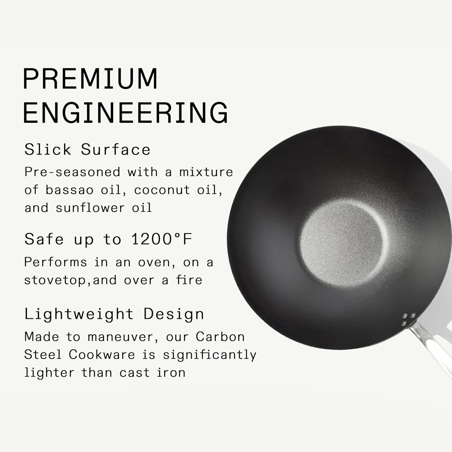 Made In Cookware | 13" Seasoned Carbon Steel Wok - (Like Cast Iron, but Better) | Professional Cookware | Crafted in Sweden | Induction Compatible—