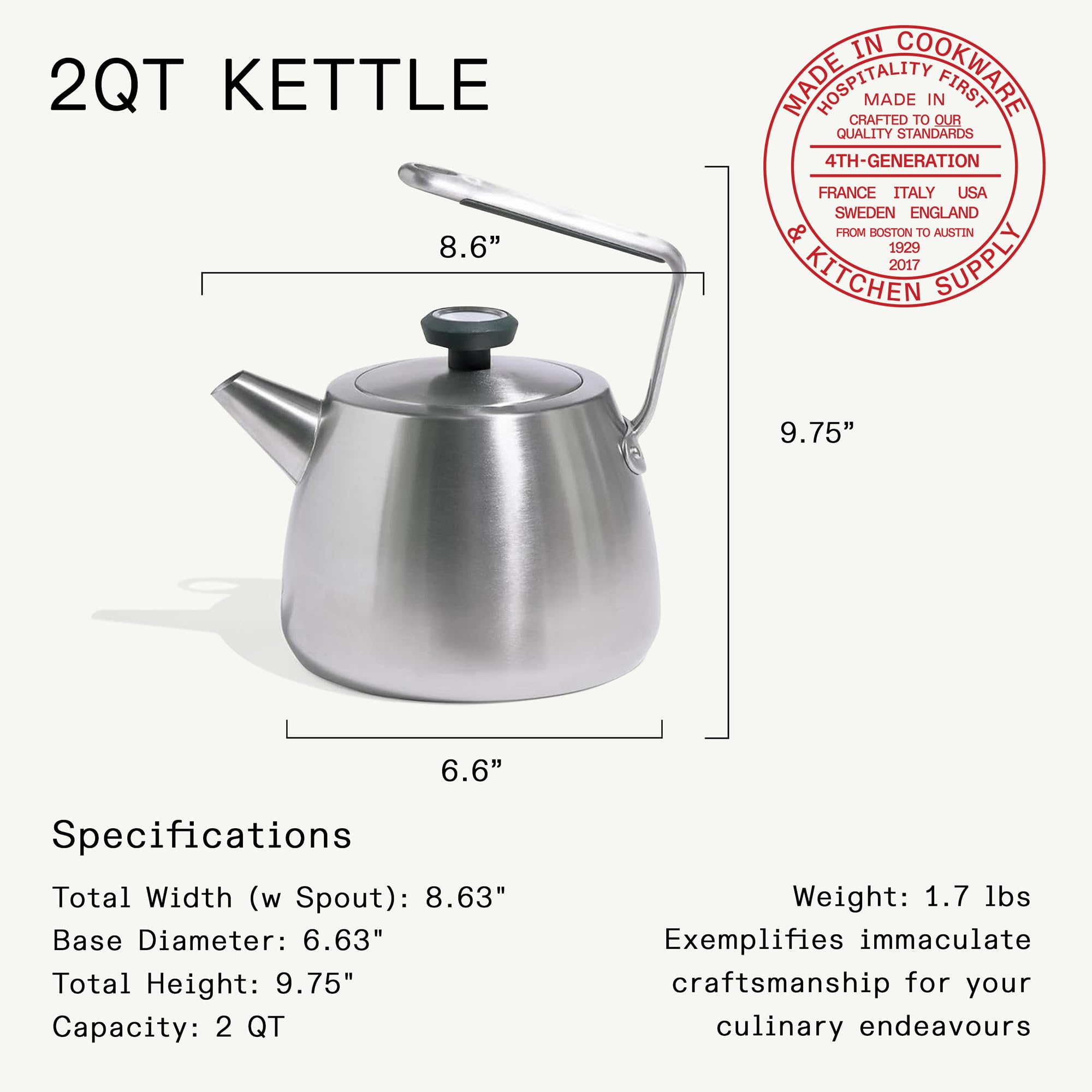 Made In Cookware | 2 QT Kettle | Stainless Steel | With Built-In Temperature Gauge | Includes Handle Sleeve | Induction Compatible