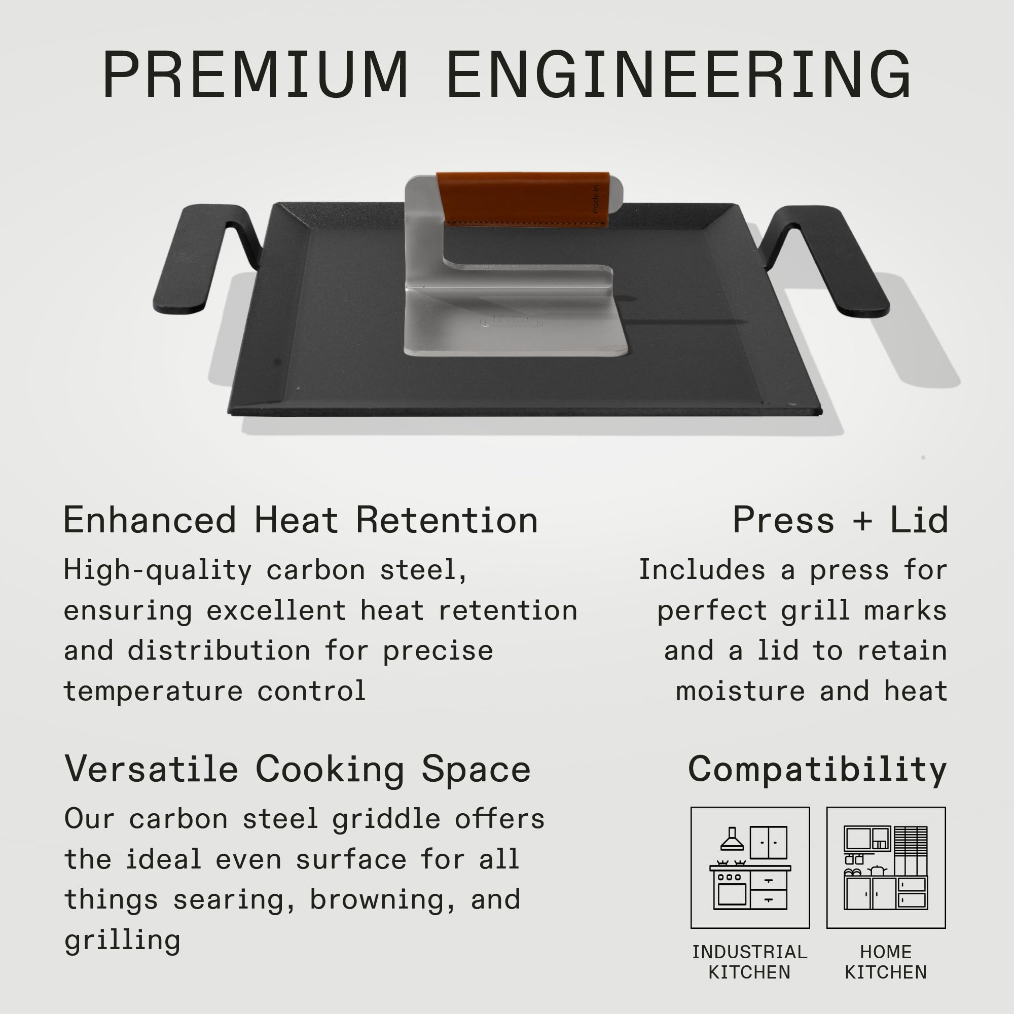 Made In Cookware | Carbon Steel Half Griddle + Grill Press - (Like Cast Iron, but Better) | Professional Cookware | Crafted in Sweden | Induction Compatible