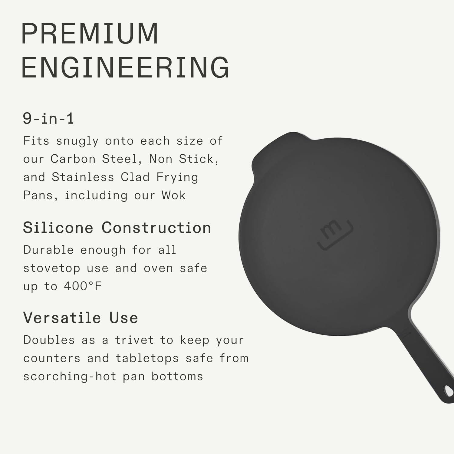 - Essentially Designed - Made In Frying Pan Silicone Universal Lid fits various cookware items like Carbon Steel, Non Stick, and Stainless Steel Frying Pans, including our Wok