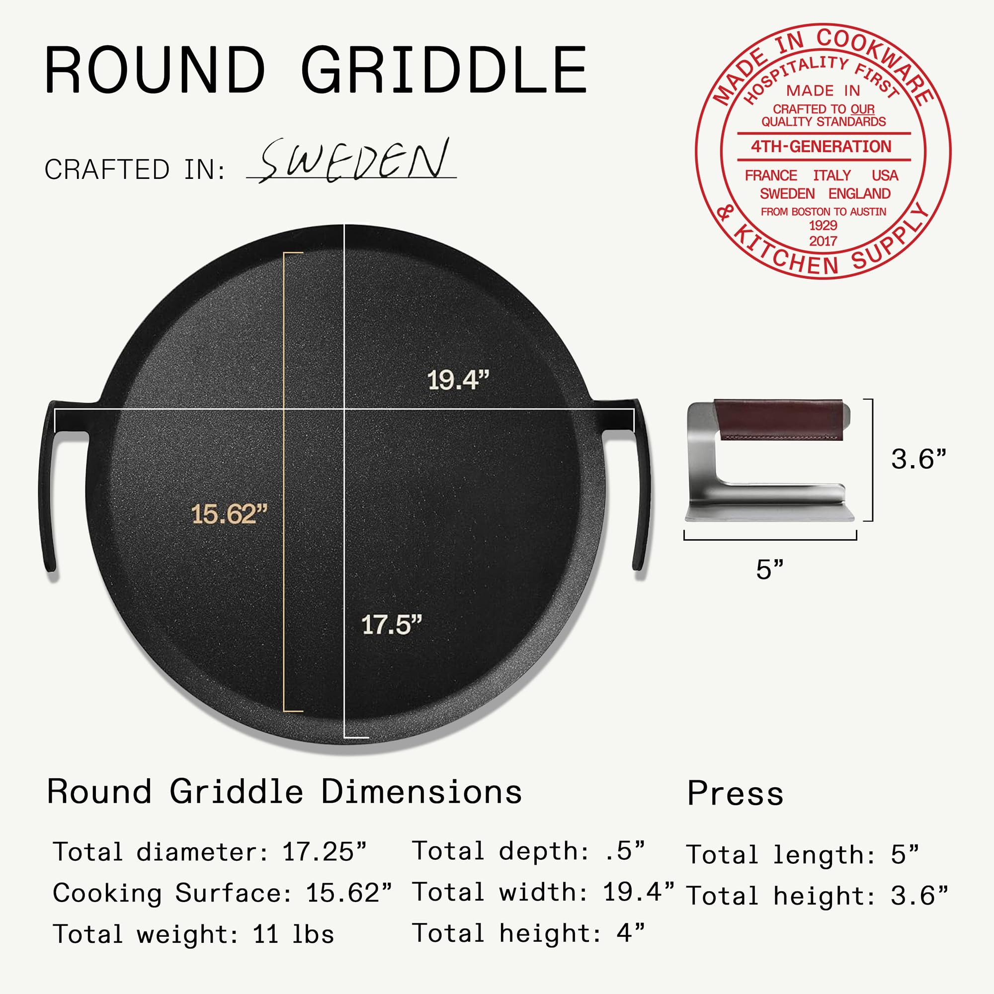 Made In Cookware | Seasoned 17" Round Carbon Steel Griddle + Grill Press - (Like Cast Iron, but Better) | Professional Cookware | Crafted in Sweden | Induction Compatible