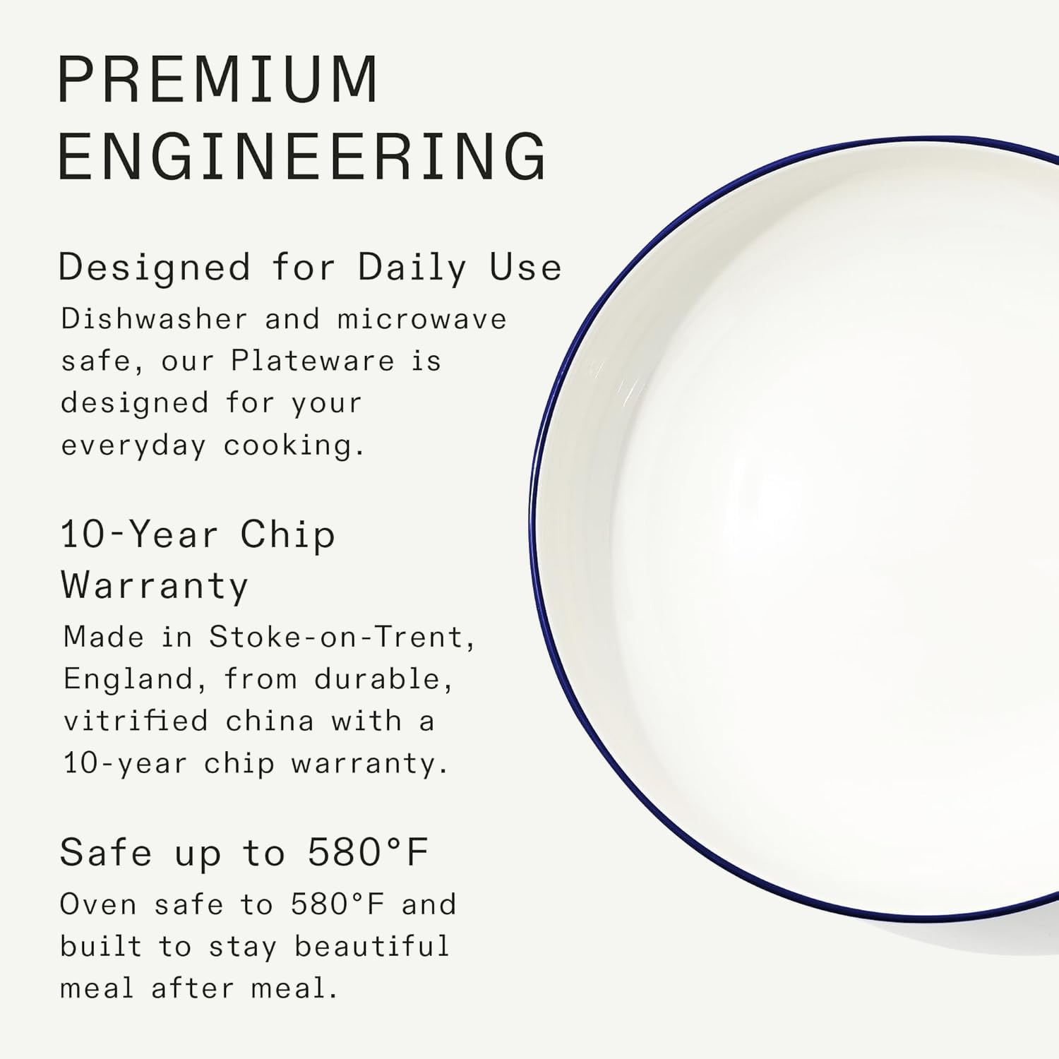 - Made in England - Meticulously fired in Stoke-on-Trent with local clay and pottery tradition, creating hard-wearing high alumina vitrified china for exceptional beauty and durability