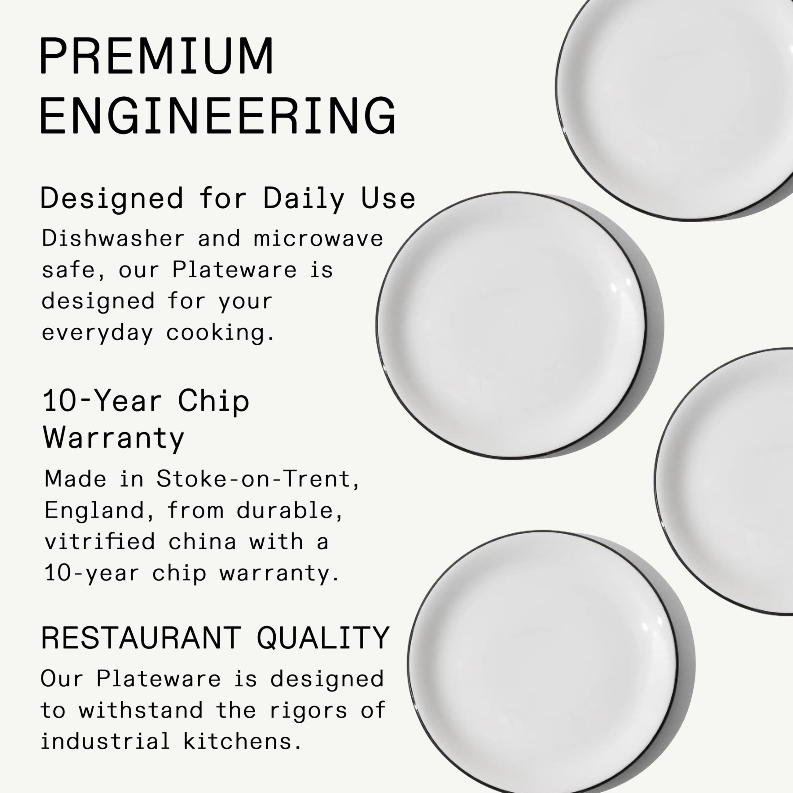 Made In Cookware | Set of 4 | Bread and Butter Plates | White With Black Rim | Porcelain England