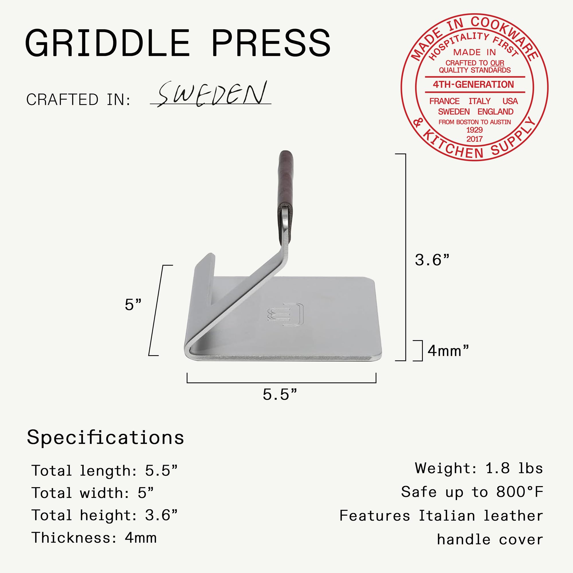 Made In Cookware | Stainless Steel Grill Press | Removable Leather Handle Cover | Crafted in Sweden